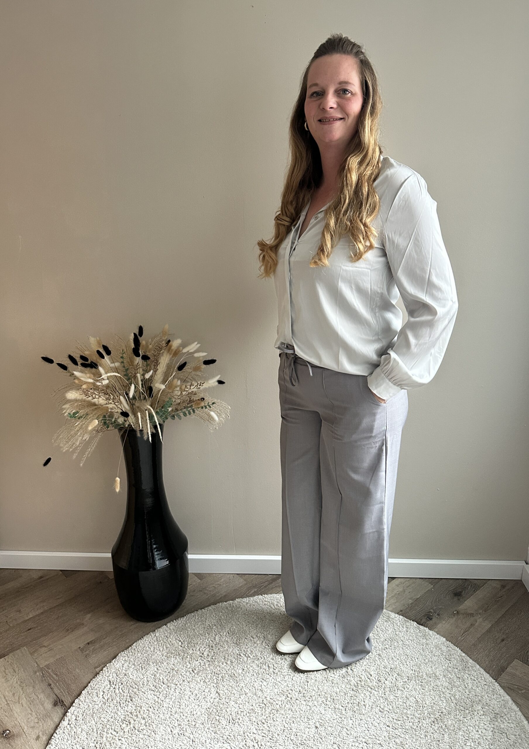 Deze stijlvolle blouse van Sweet Miss Women’s Fashion is een perfecte aanvulling op je garderobe. De subtiele lichtgrijze kleur geeft een frisse, elegante uitstraling en is makkelijk te combineren met zowel zakelijke als casual outfits.
