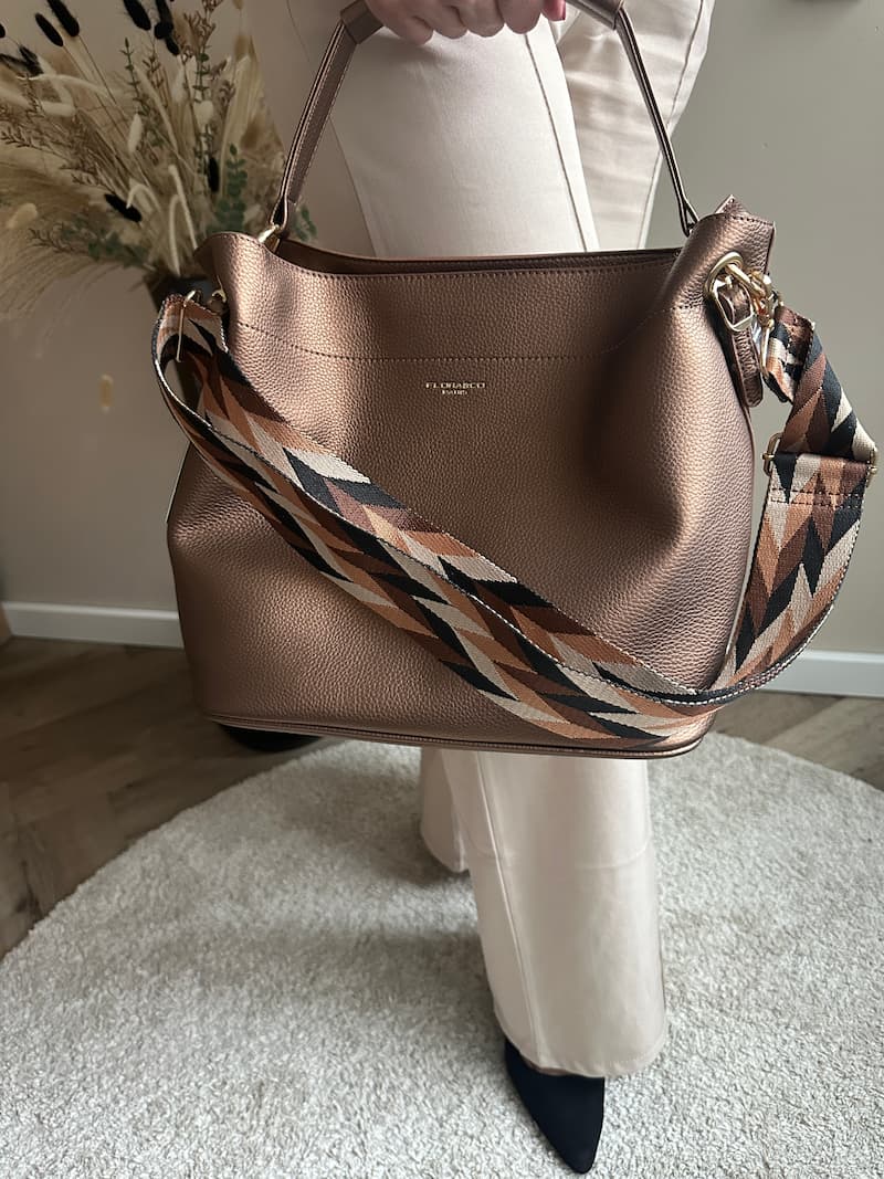Deze elegante handtas van Flora & Co combineert functionaliteit met stijl. De tas is gemaakt van hoogwaardig kunstleer en heeft een luxe uitstraling. Dankzij de stevige handgreep draag je de tas klassiek in de hand, terwijl de afneembare schouderband met grafisch patroon zorgt voor een moderne twist en extra draagcomfort.