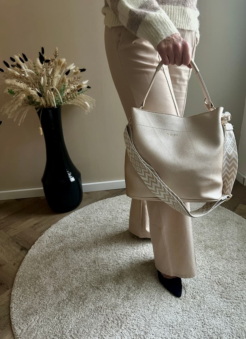Afneembare en verstelbare schouderband met grafisch patroon