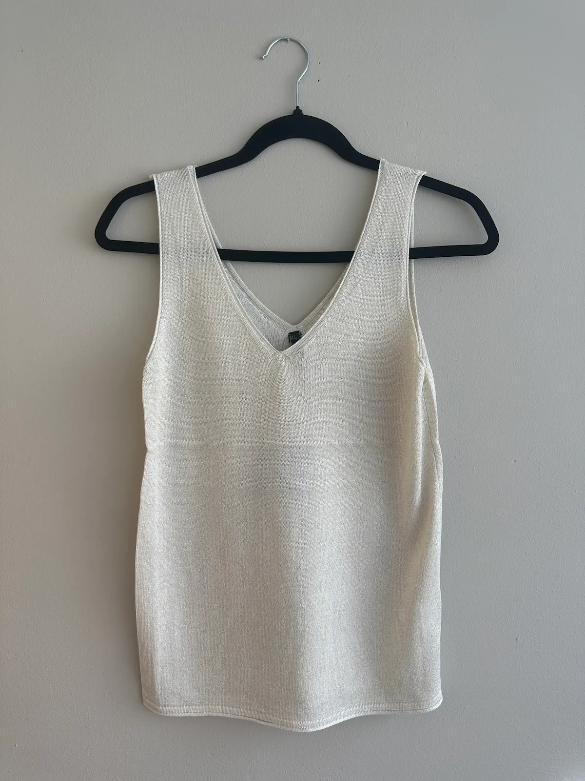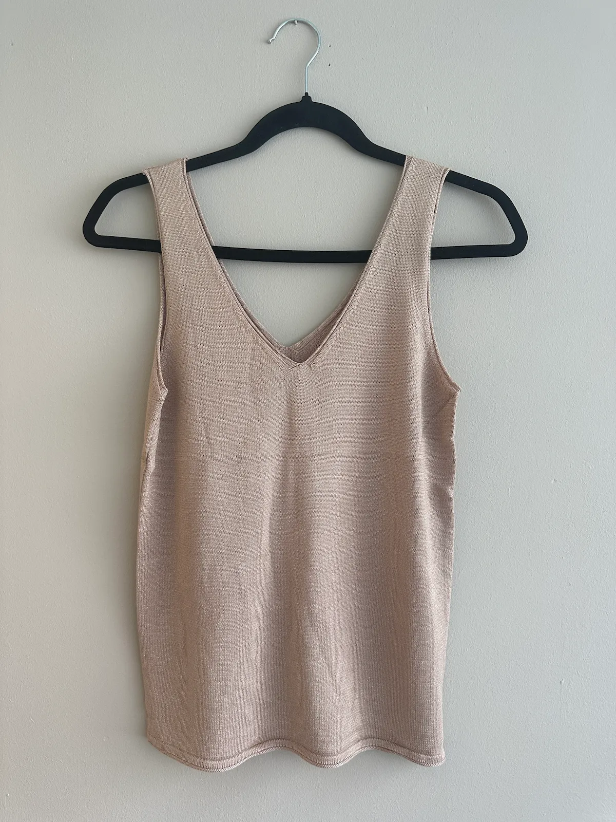 Deze elegante mouwloze top van Golden Days is een echte must-have voor iedere garderobe. Met zijn subtiele glans en verfijnde V-hals straalt de top eenvoud én klasse uit.