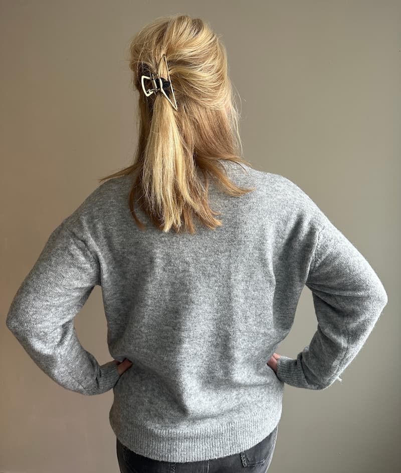 Deze trui is één maat, te dragen tot maat 40
